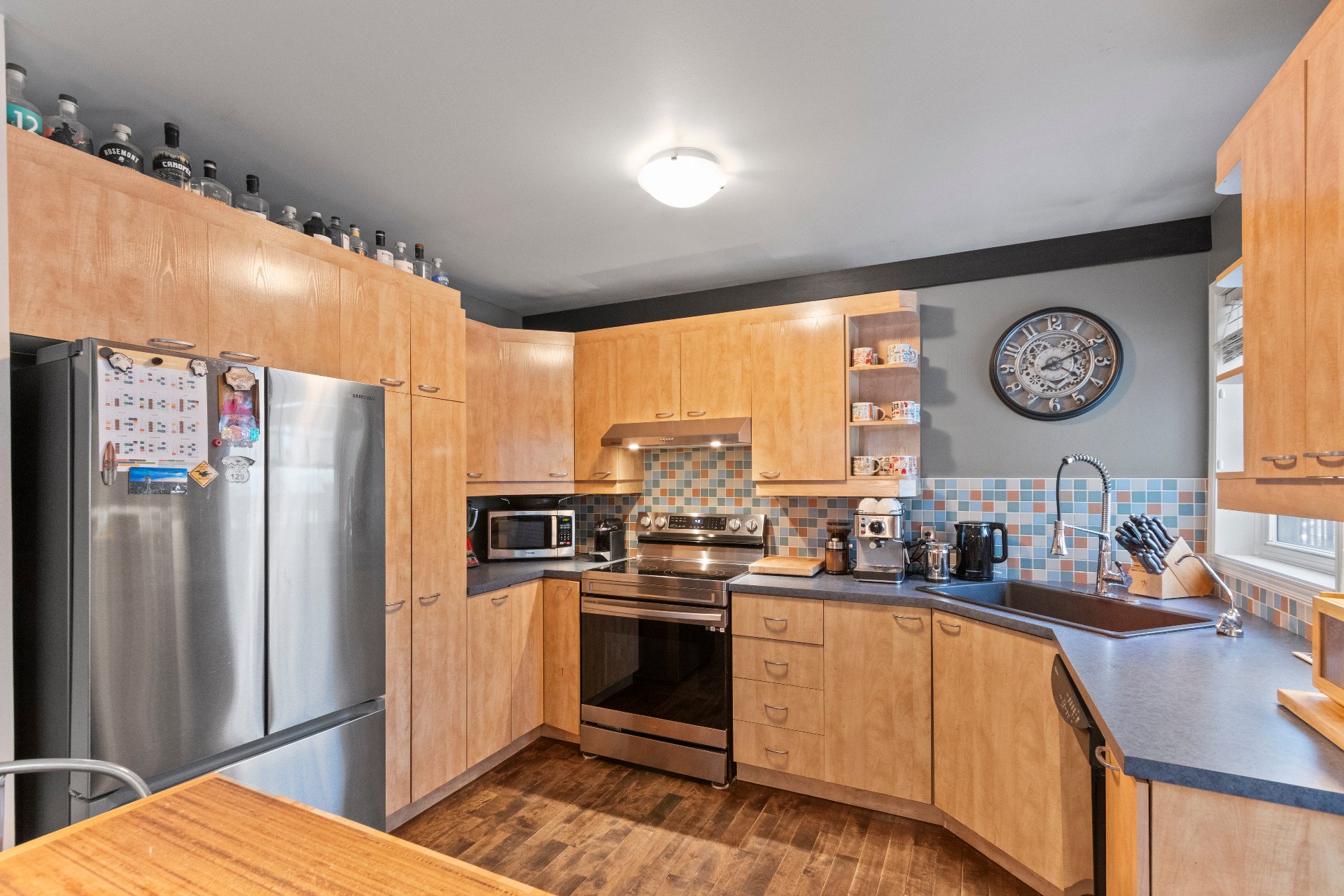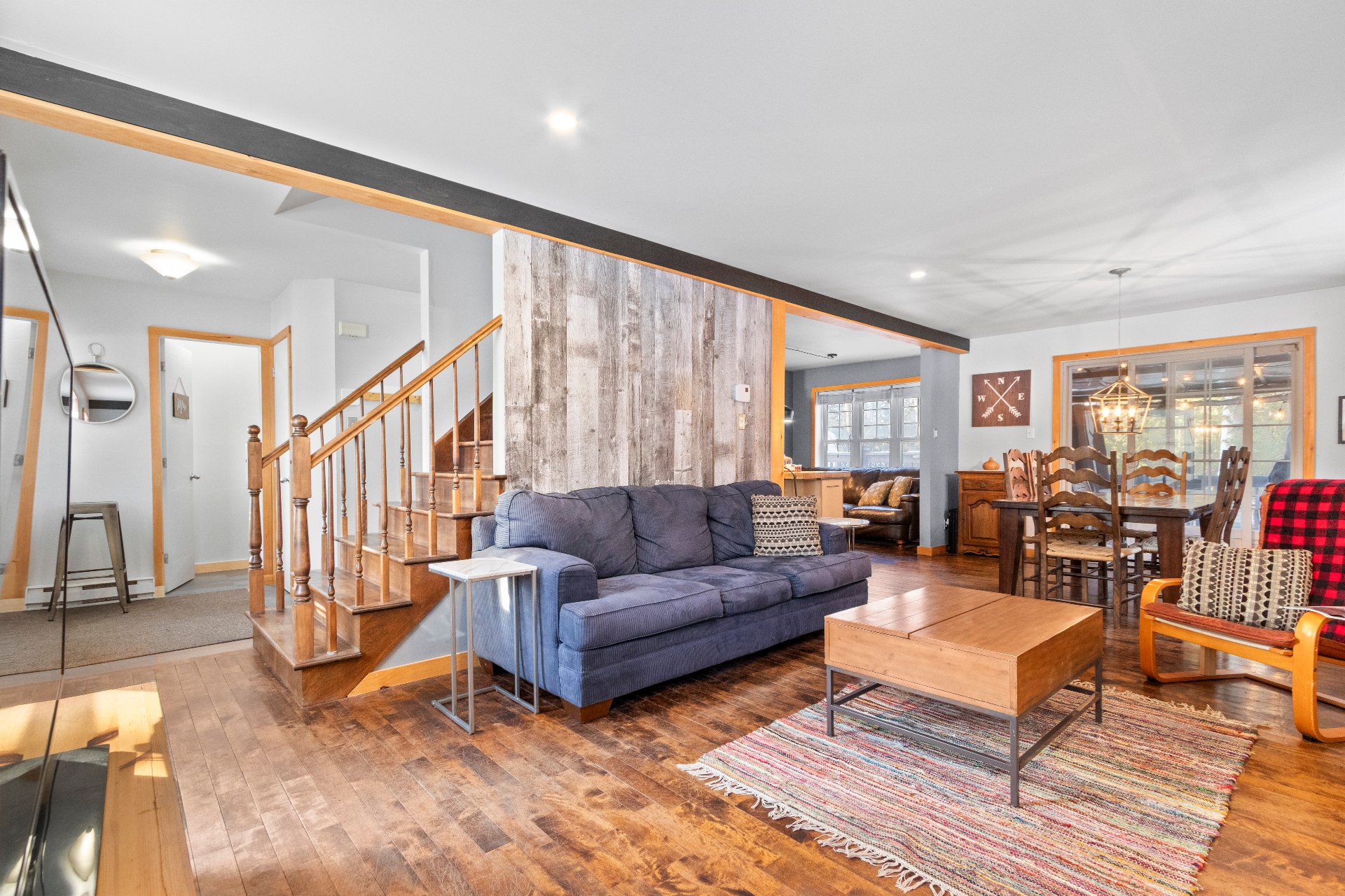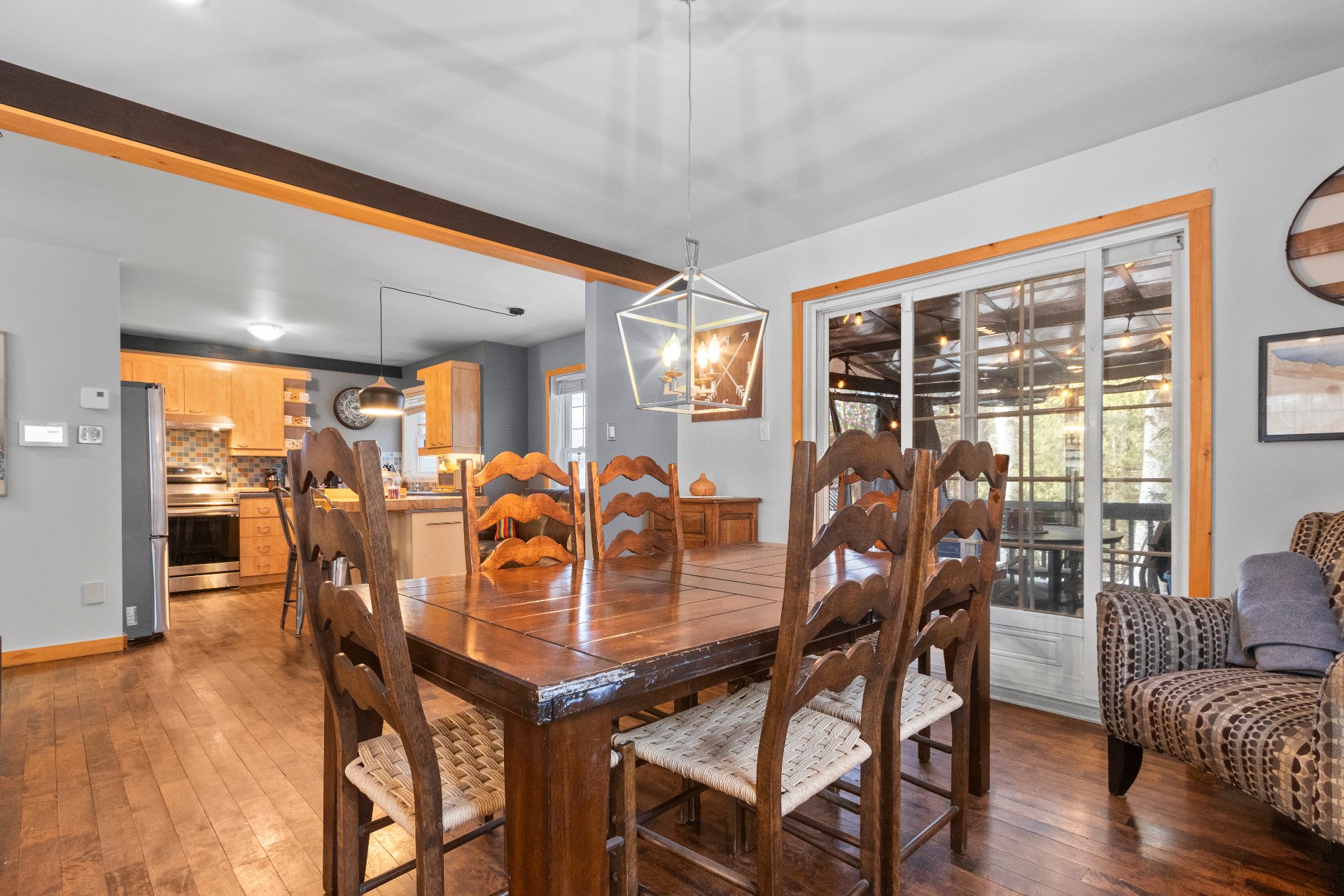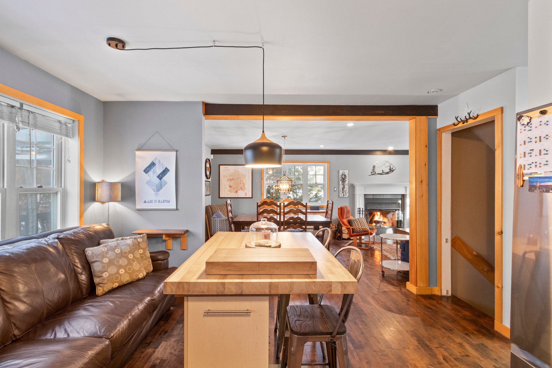 Rez-de-chaussée -Aire ouverte conviviale : grande cuisine avec îlot, salle à manger lumineuse et salon avec foyer au bois. -Salle d'eau et salle de lavage au rez-de-chaussée, un avantage considérable.