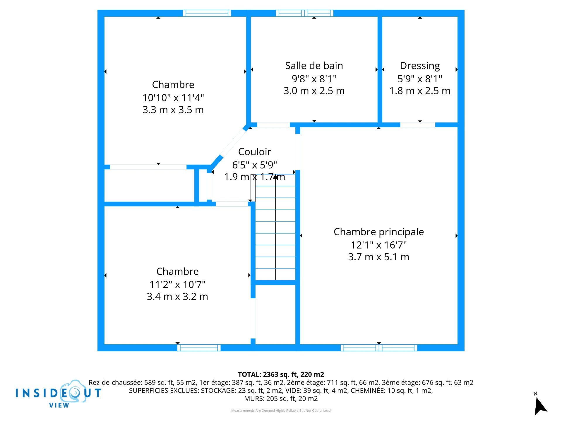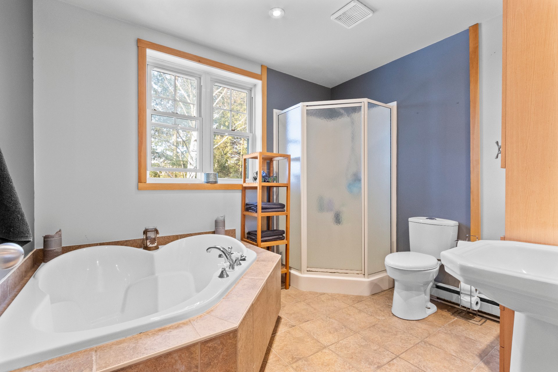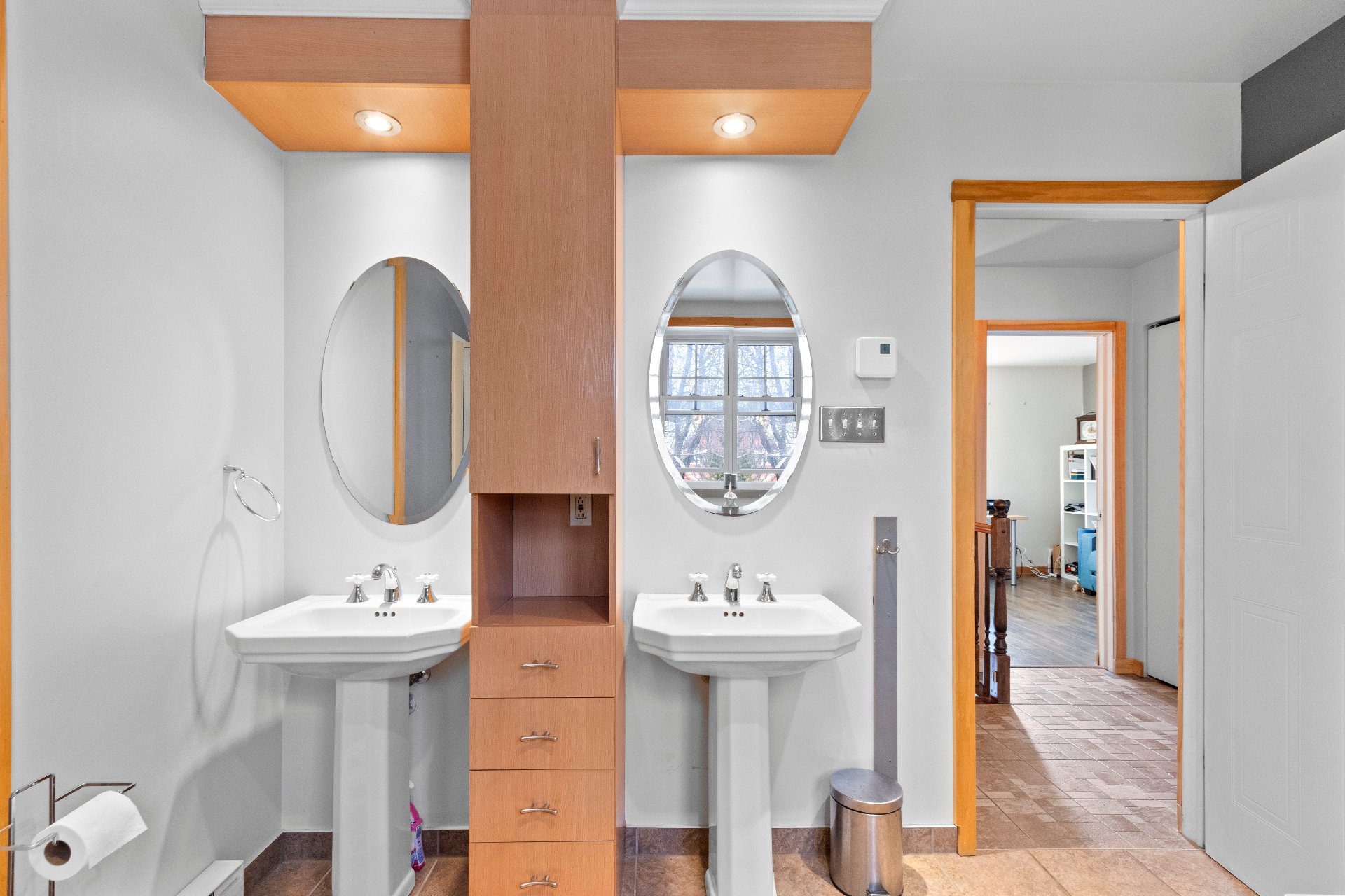 Étage -Trois chambres regroupées, parfaites pour la sécurité des jeunes enfants -Grande salle de bain avec bain podium, douche et deux lavabos -Chambre principale avec coin lecture plein sud et grand walk-in