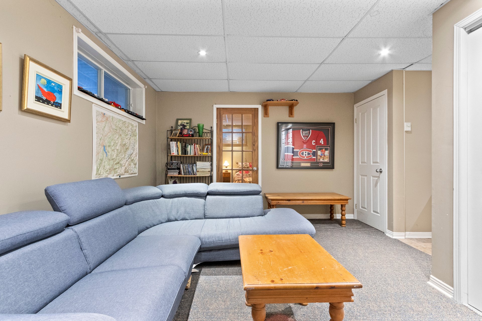 Sous-sol entièrement aménagé -Salle familiale spacieuse -Chambre ouverte sur un grand espace polyvalent (salle de jeux, gym, bureau ou chambre) -Salle de bains