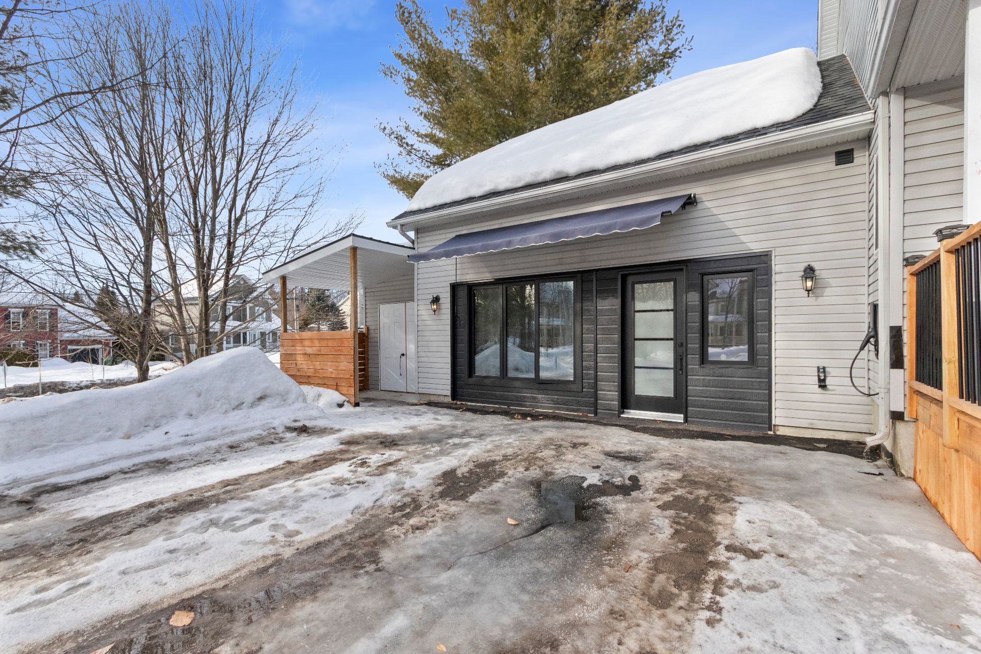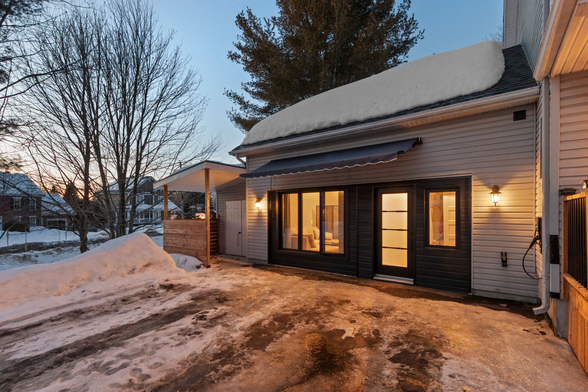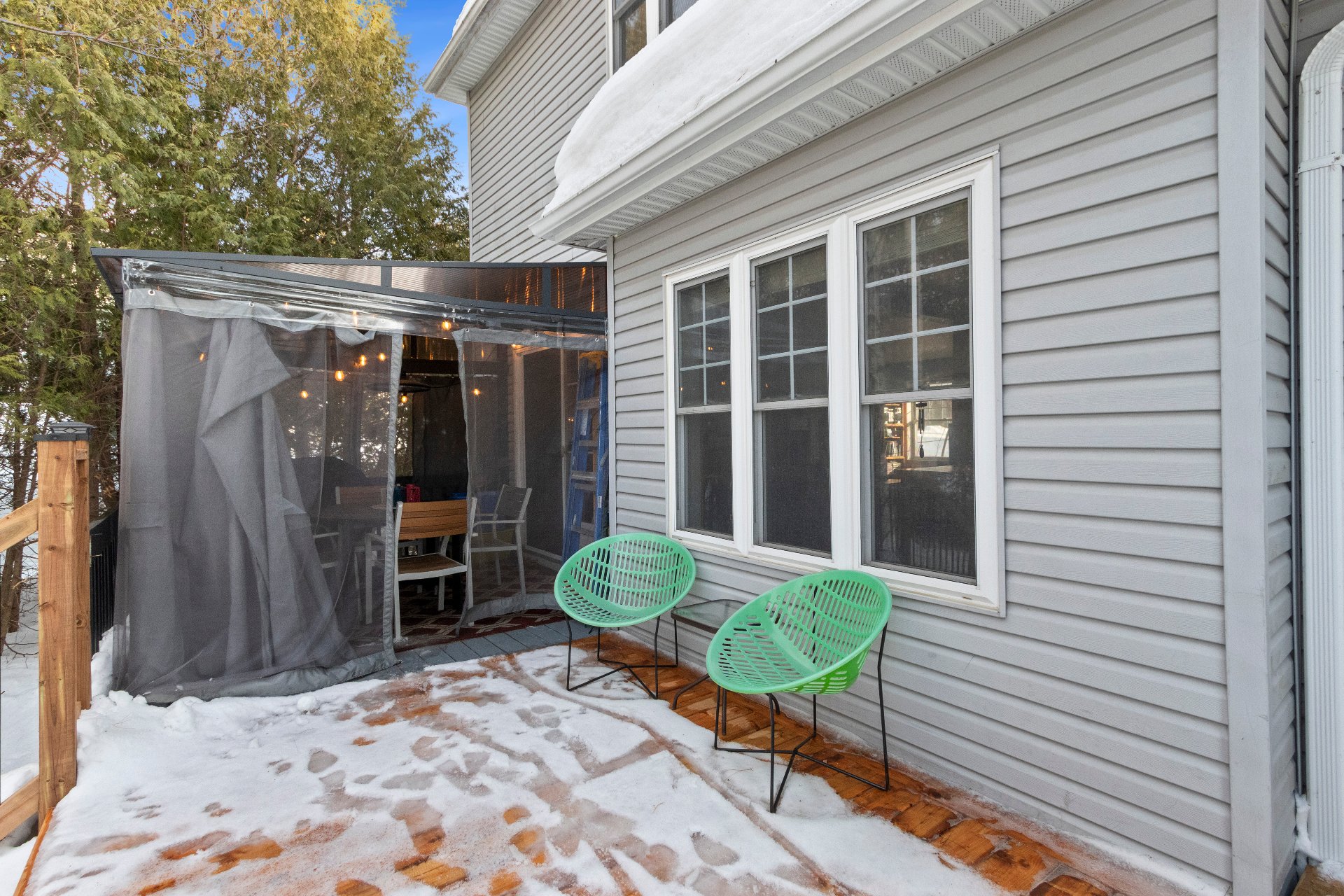 Aménagement extérieur exceptionnel -Immense balcon arrière 12 x 61 pieds -Accès direct du gazebo à la piscine chauffée -Véranda 3 saisons 10 x 20 pieds, adjacente au loft, orientée vers le coucher du soleil -Chargeur pour véhicule électrique niveau 2. -Cabanon spacieux