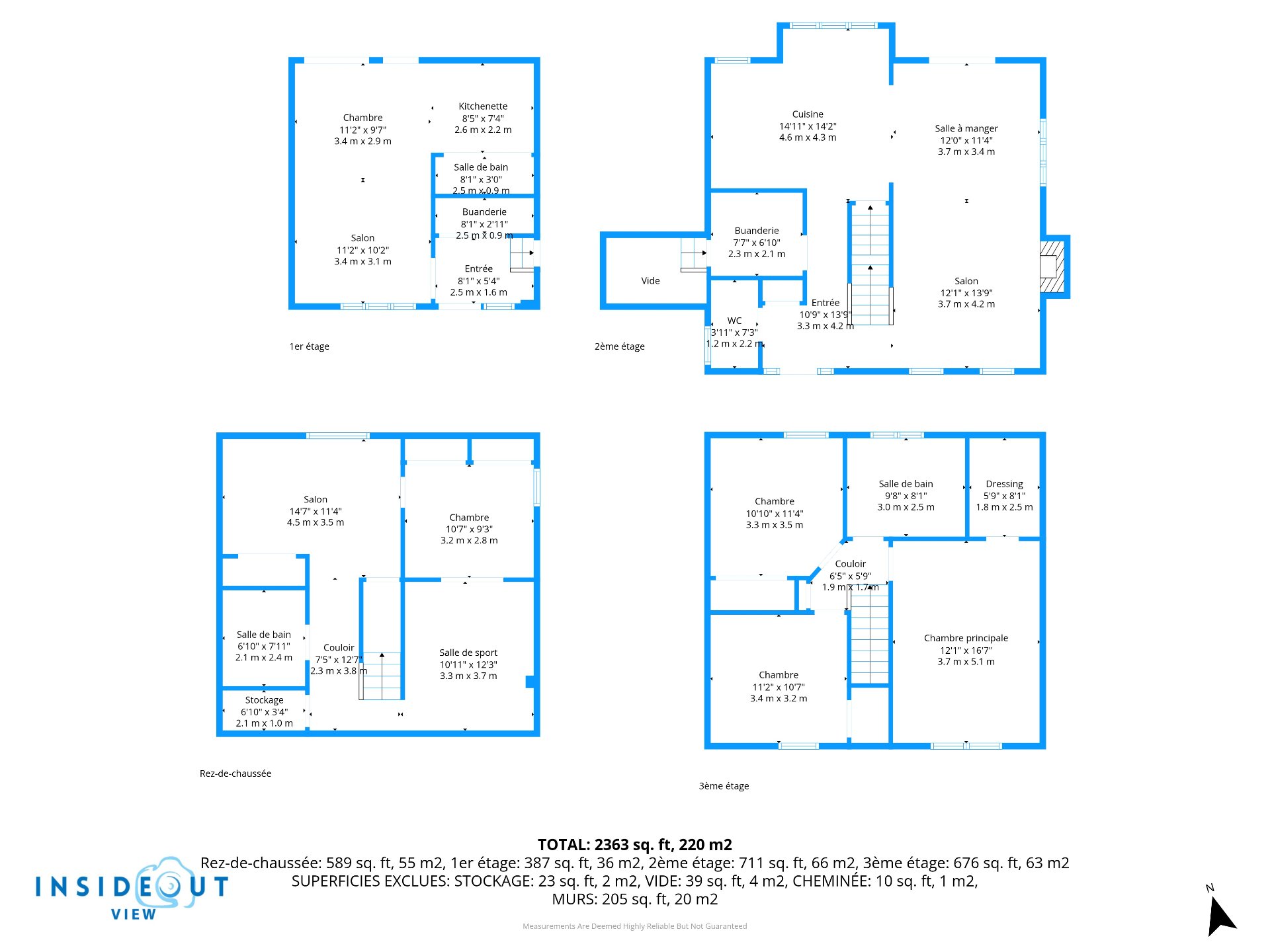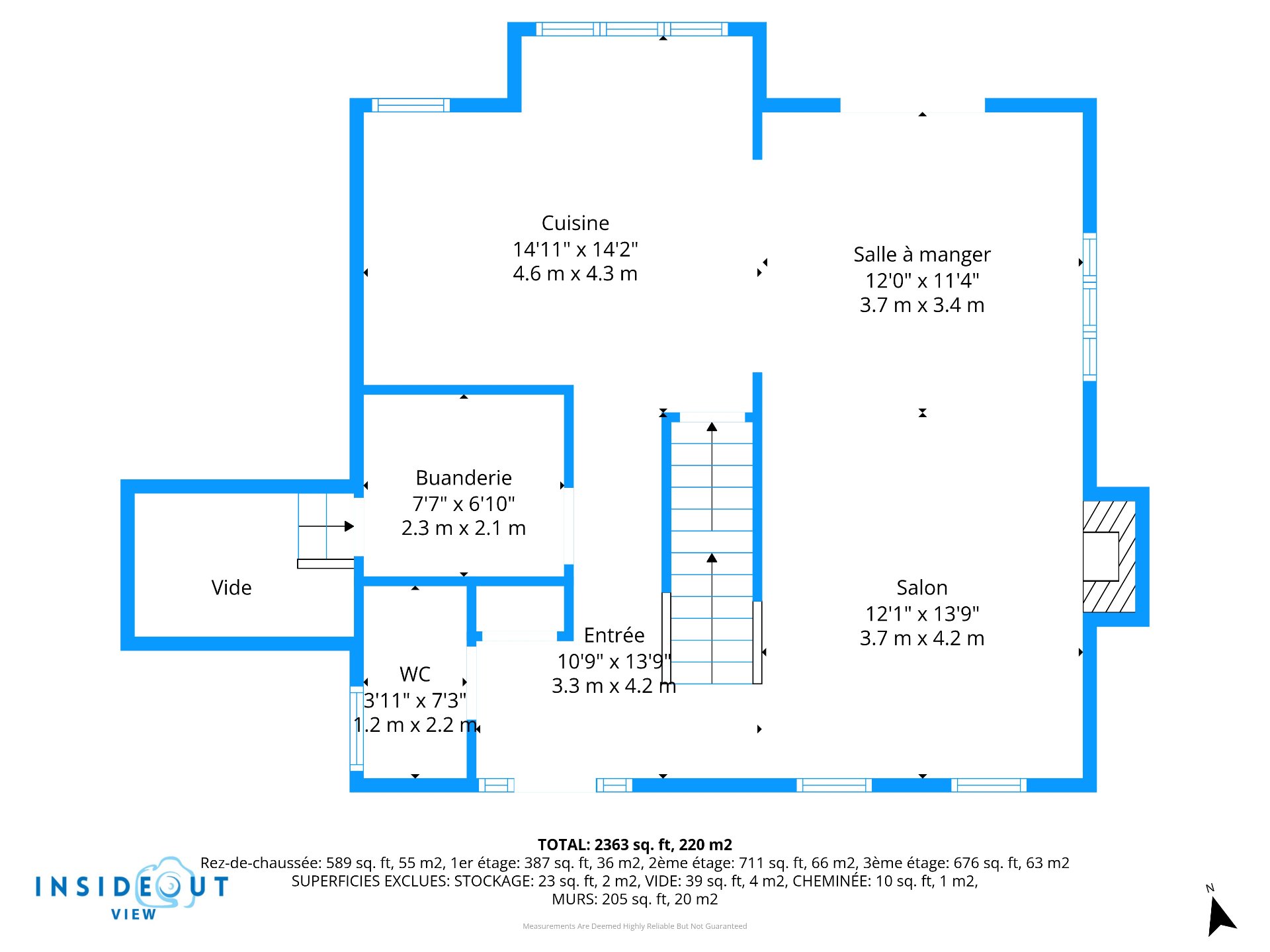 | Salon | 12.1 x 14.1 P | Rez-de-chaussée | Bois |