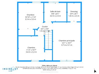| Chambre à coucher principale | 16.11 x 12.1 P | 2ième étage | Plancher flottant |